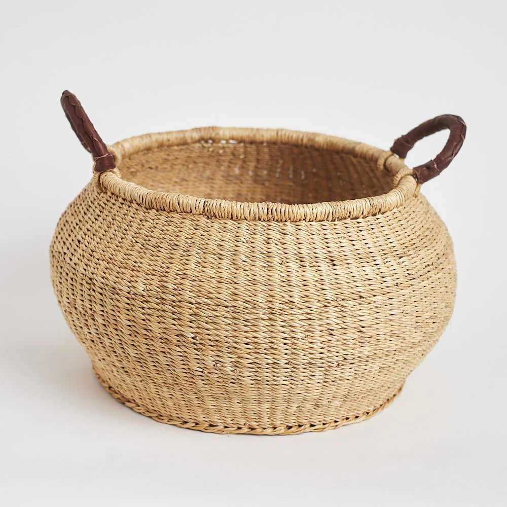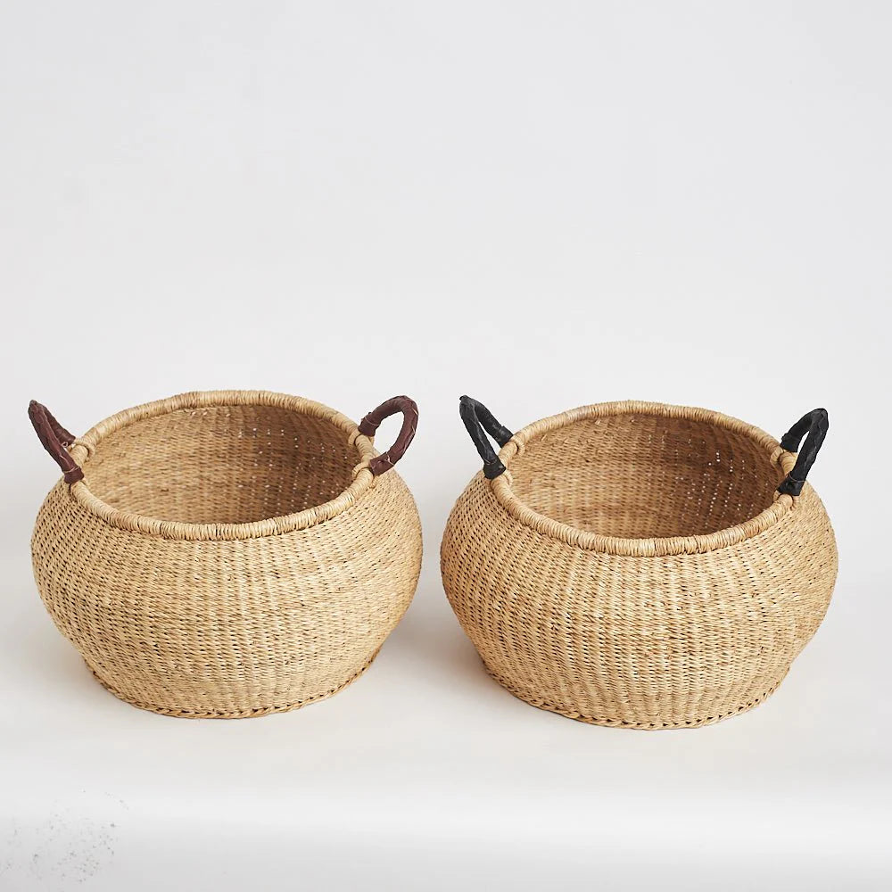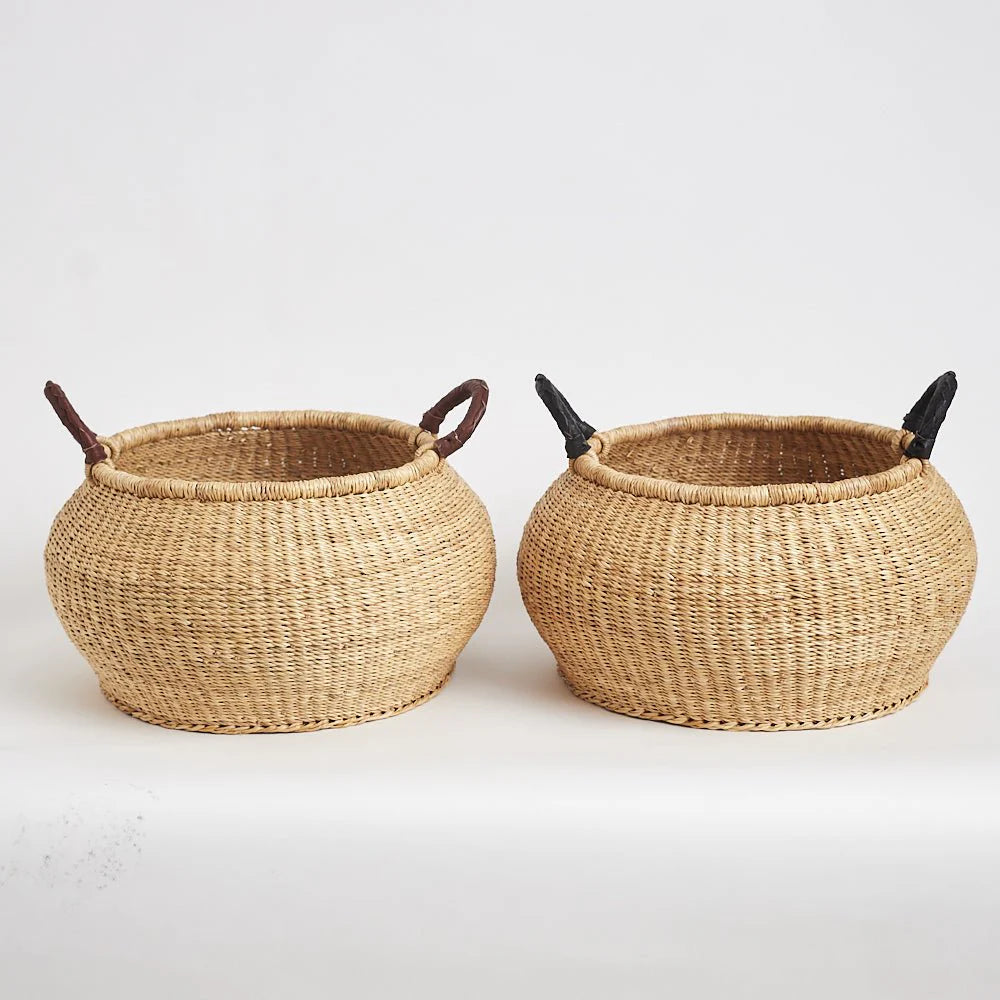 Woven Pot Baskets are a truly timeless addition to any space, bringing a timeless symbol and a traditional touch to homes across the country. The latest addition to the Woven Worldwide Storage Collection is made in a locally sourced, tri-tone elephant grass with a single-weave technique and ballooned proportions.