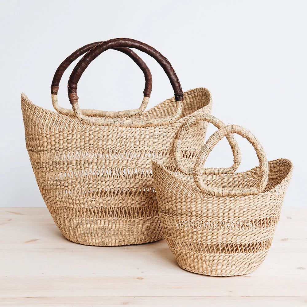 Artisans in the Bolgatanga region of Ghana weave these beautiful and durable shoppers from thick, tough elephant grass. Bolga baskets stand up to use and abuse and remain functional and beautiful for years.