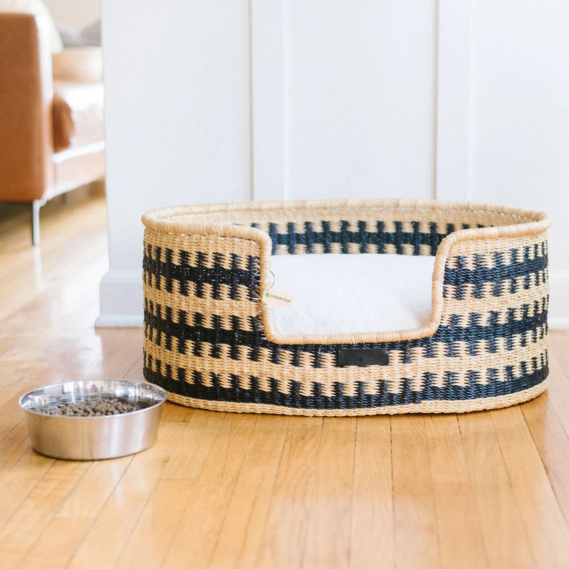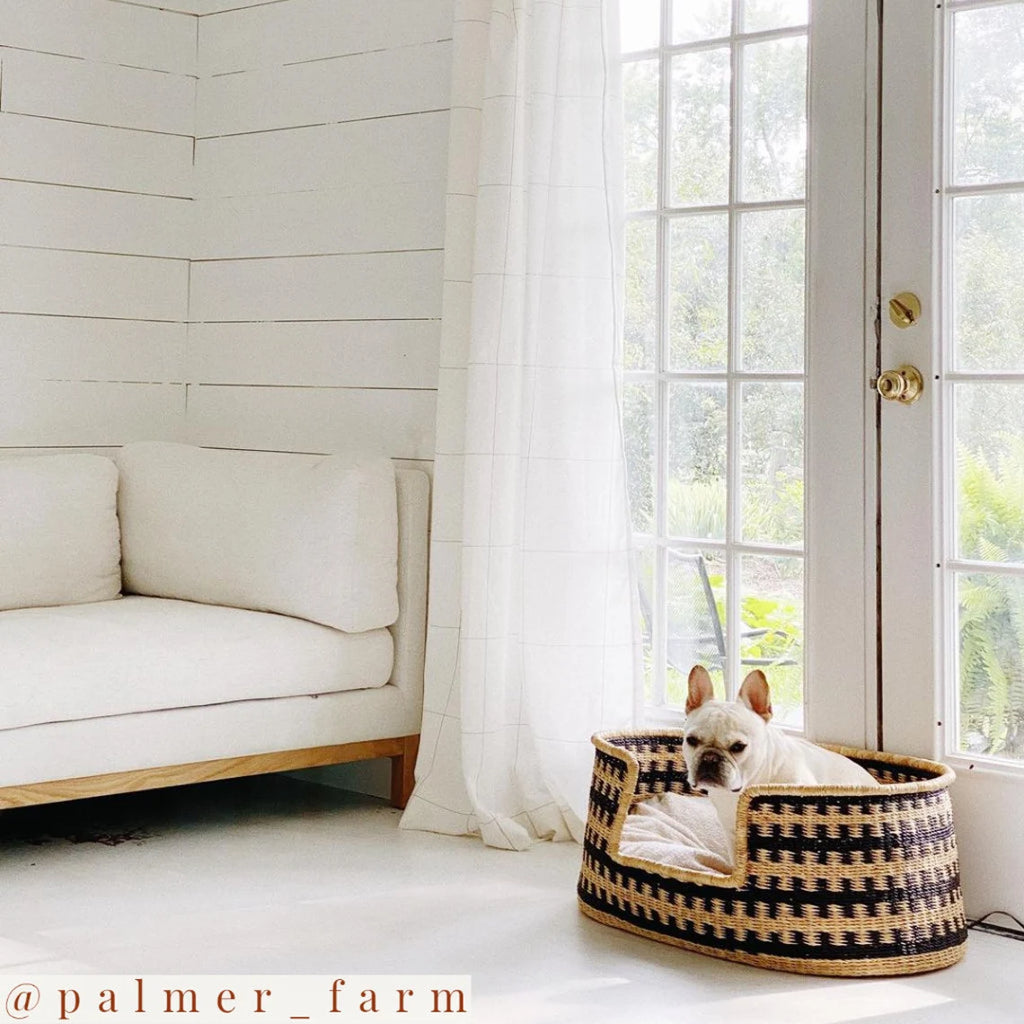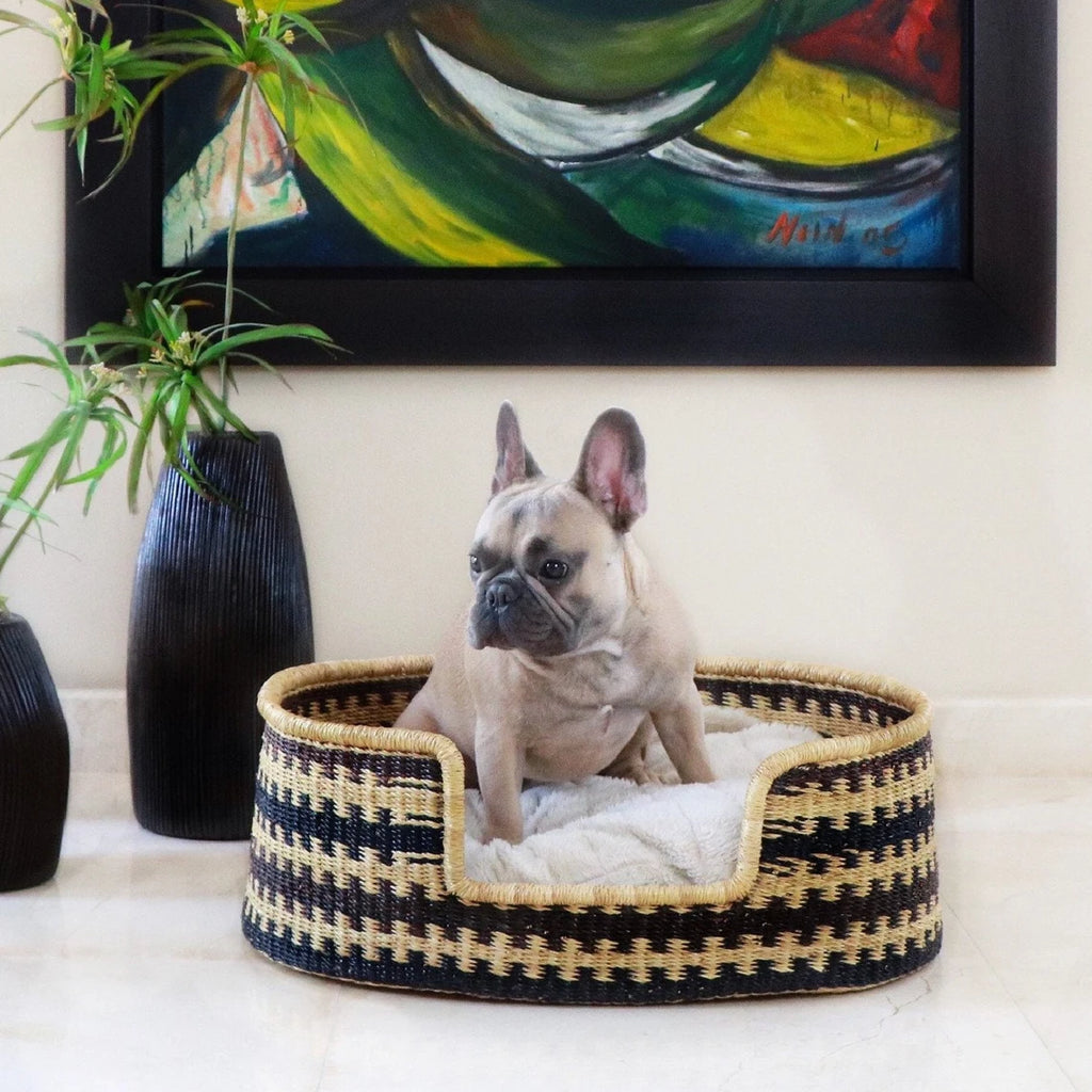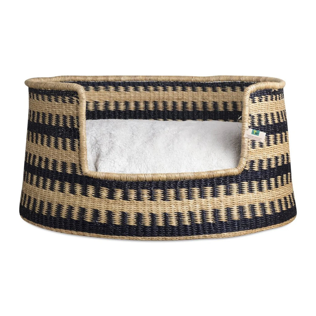 Made by Ghanaian artisans using traditional techniques, the dog basket is hand-woven with elephant grass (or miscanthus). It is a real unique work of art, since each basket takes several days to weave. For the colored patterns present on certain models, they are made from non-toxic natural (vegetable) dyes!